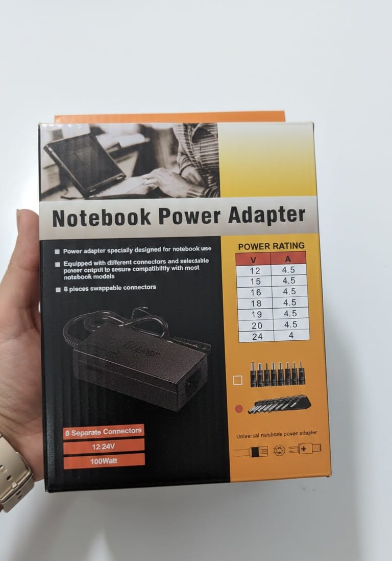Incluye 8 cabezales de diferentes tamaños convertidores a distintos pase de carga, igualmente recomendamos probar si sirve con su computadora portatil.