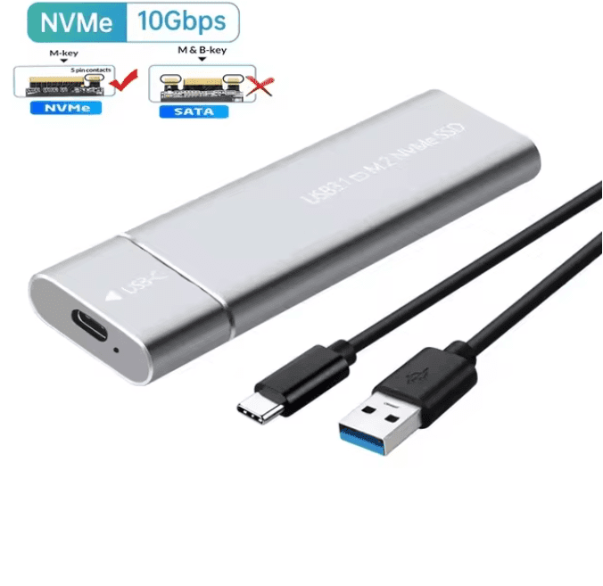 Esta es una caja de disco duro M.2 NVME SSD que admite velocidad USB 3.1 hasta 10Gbps.